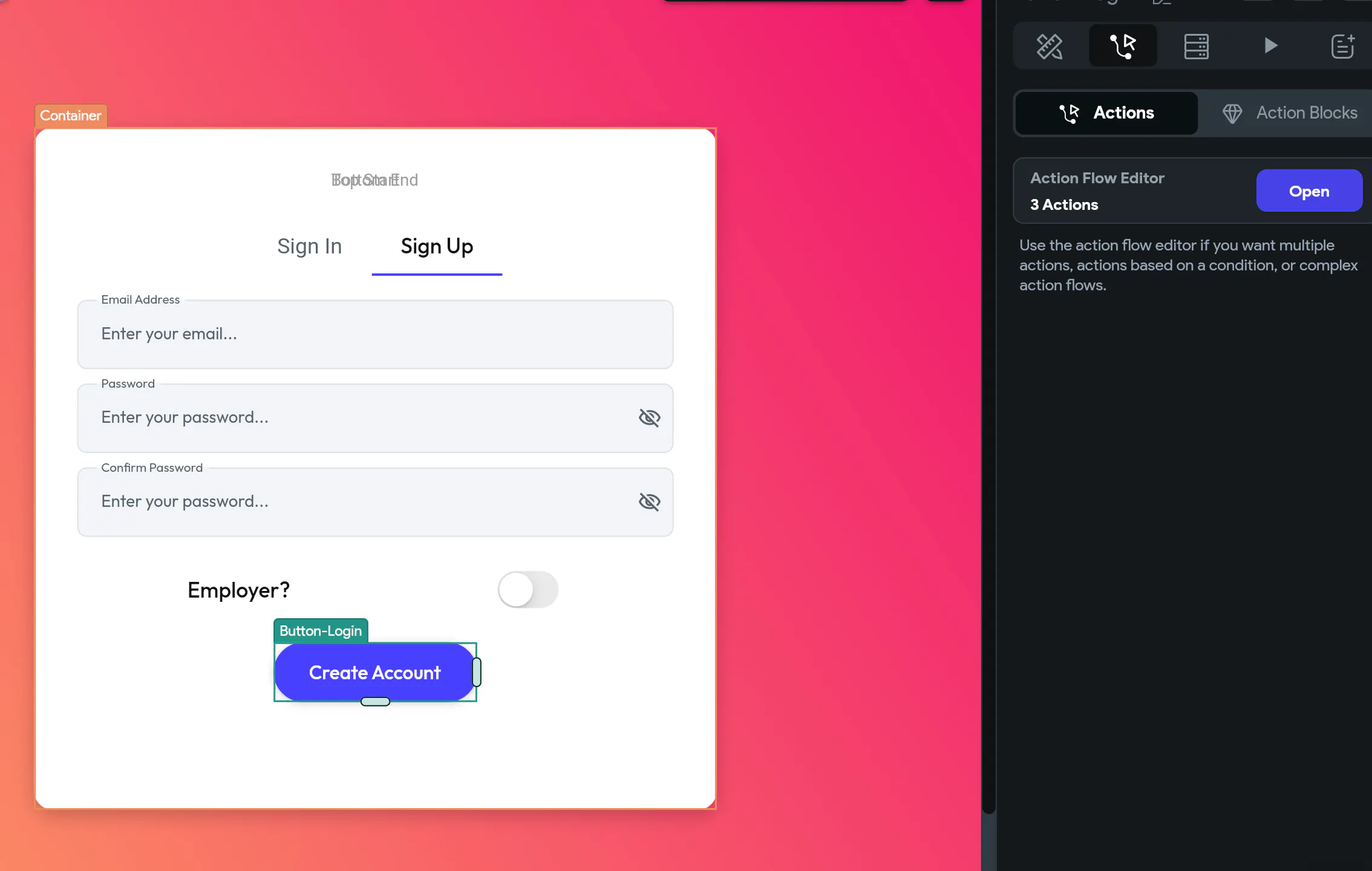 I'm new here so any help or advice at all would be greatly appreciated. I'm trying to create a user sign up page with an additional toggle/option on it that would in turn affect the page the user goes to next.. only two options. And I really can't get this to work any which way I try it? Here's some screen shots: