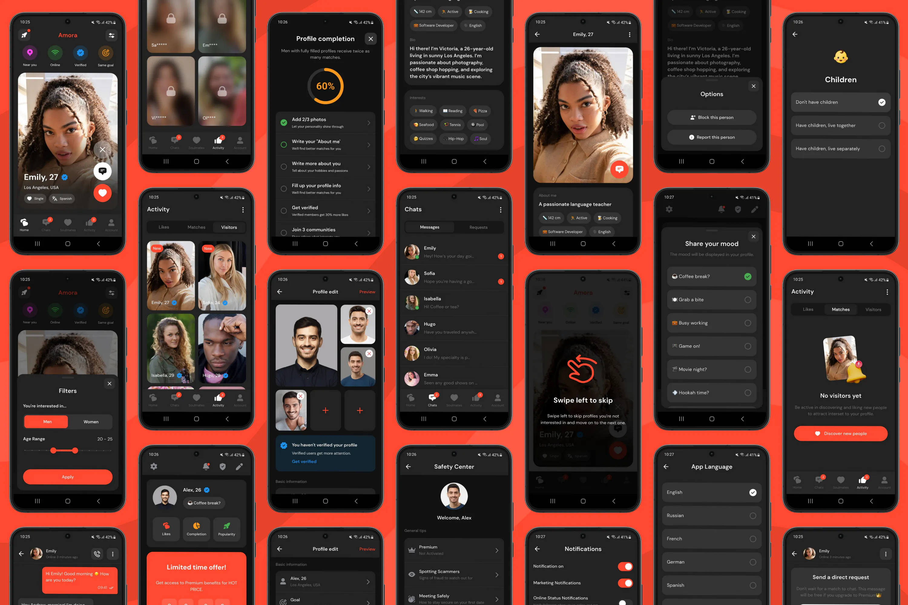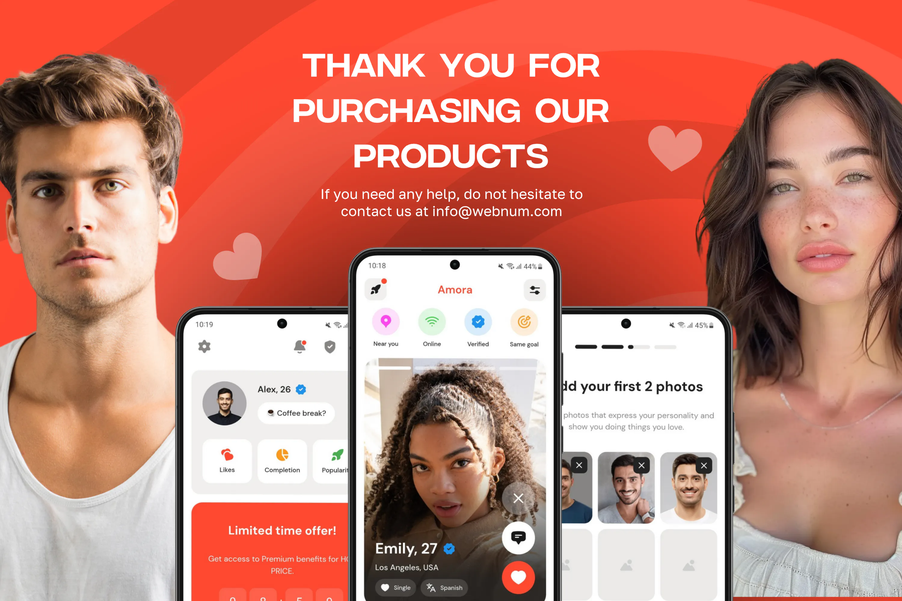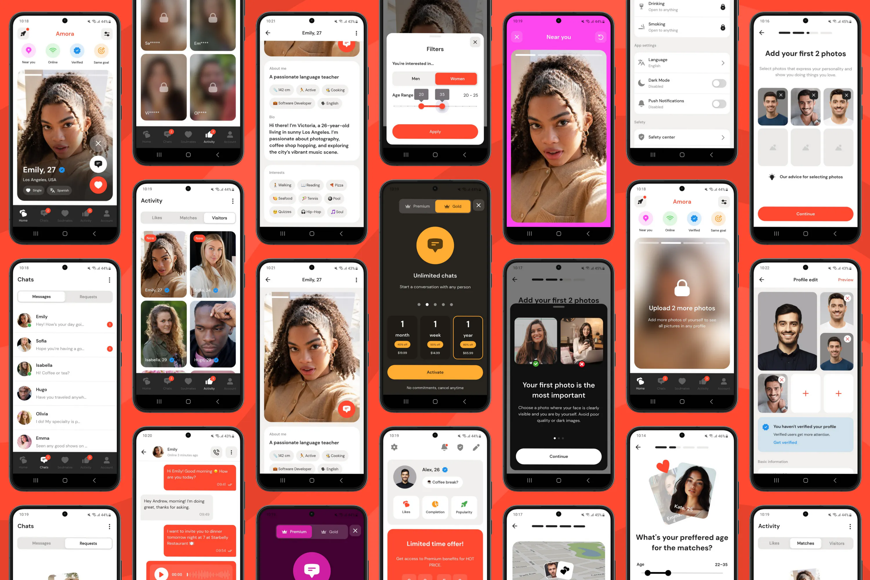 Amora gives you 150+ ready-to-use screens and components, so you can focus on what matters, building connections.
