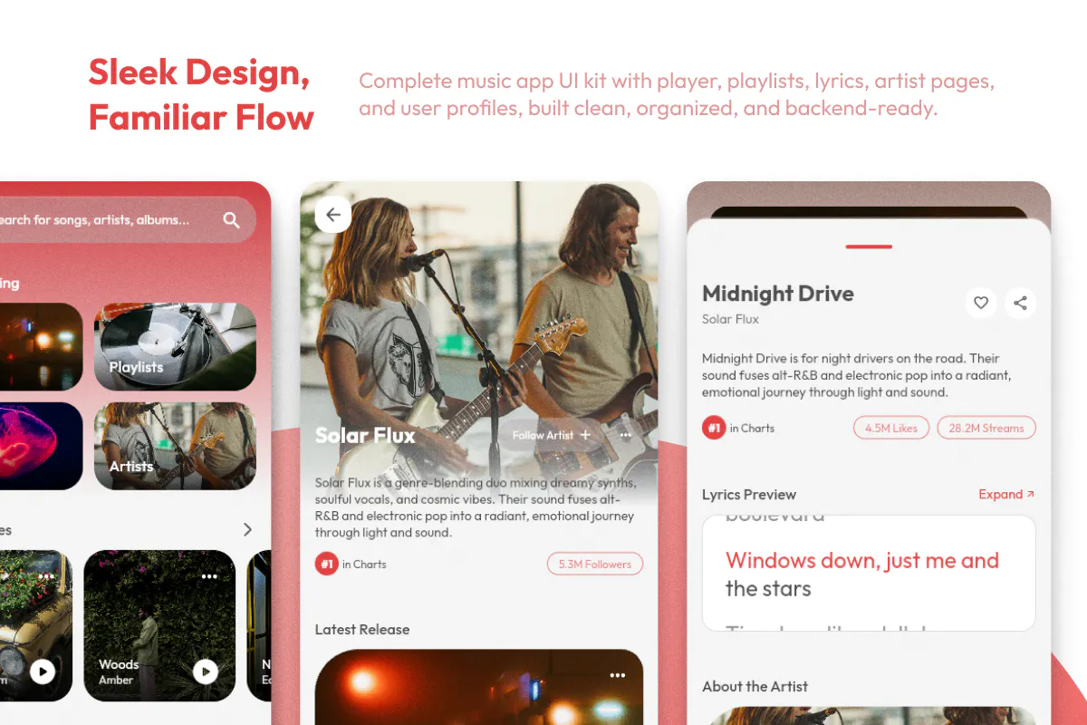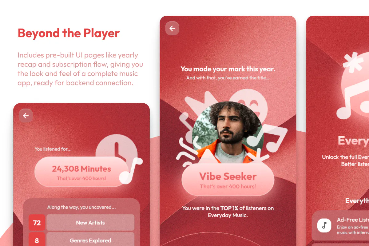 Everyday Music is a polished, modern UI kit inspired by top streaming apps β but simplified so you can customize it fast.