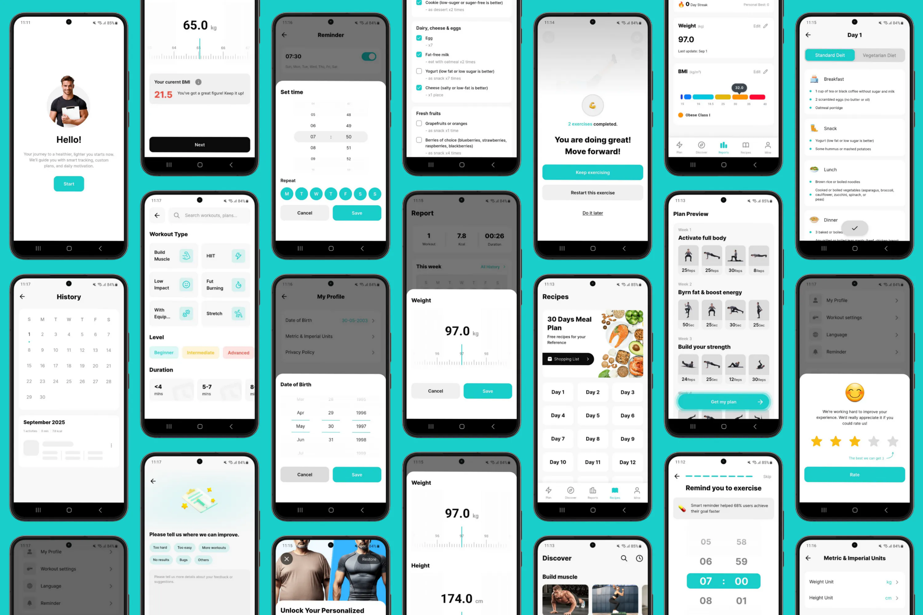 Weight & BMI Tracking: Monitor progress with interactive charts and detailed reports.
