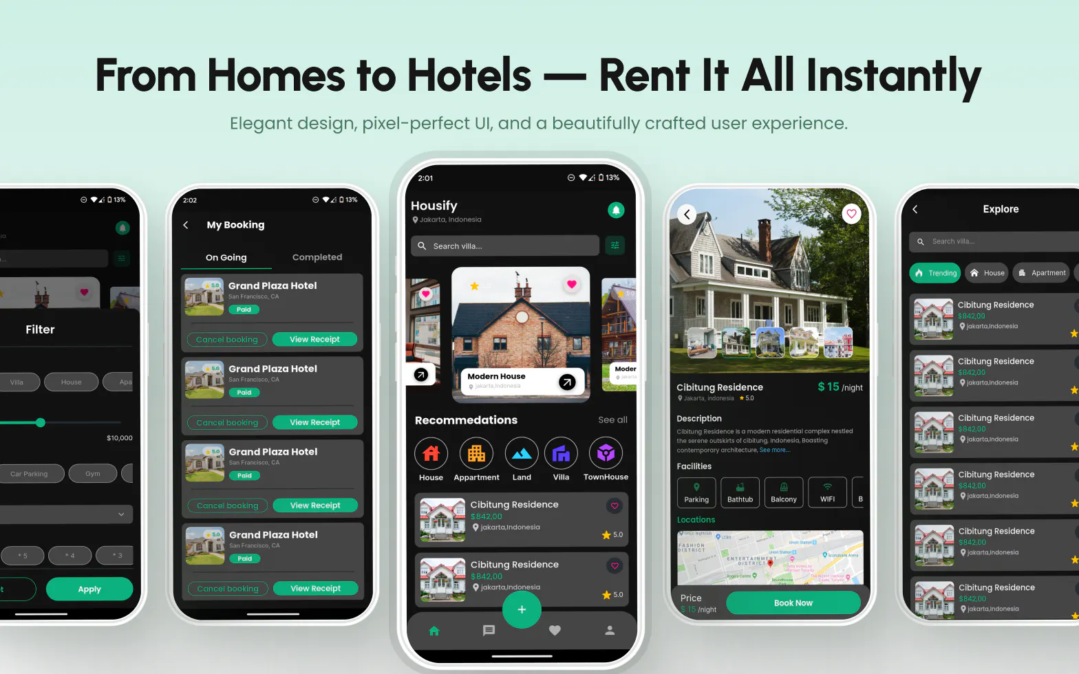 Housify is a well-designed mobile app UI kit made for real estate and hotel rental platforms. Whether you're starting a home rental service like Airbnb or a hotel booking app, Housify provides a sleek, modern, and easy-to-use interface for listing properties, browsing stays, and making bookings at any time.