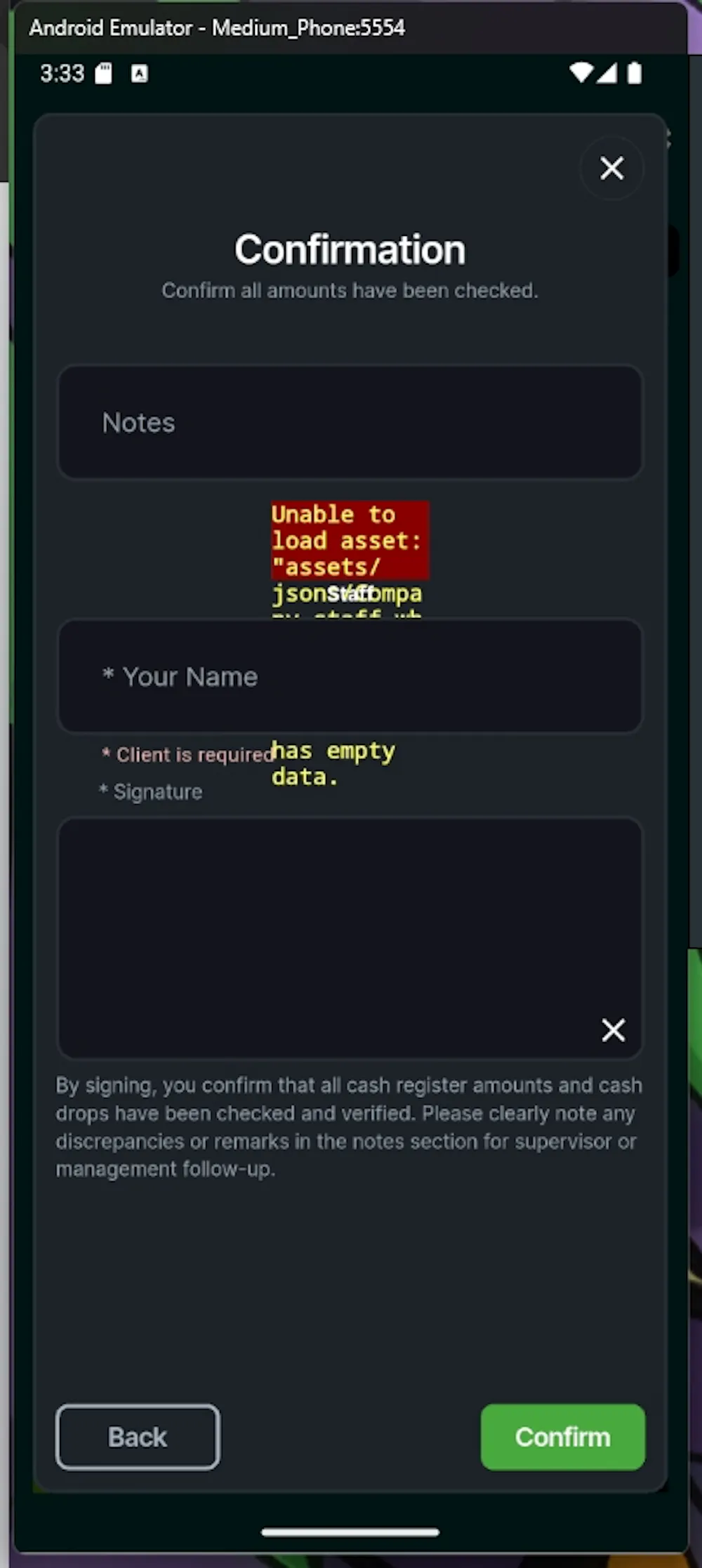 Sometimes the emulator just keeps loading or shows blank UI where assets should be.