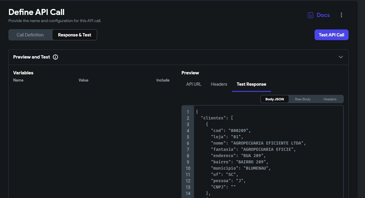 Hello, I'm having problems with an API result. When I use response and test, the result returns correctly: