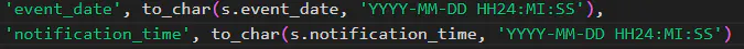 a. Like me, I made a slight change in my rpc function: 'event_date', to_char(s.event_date, 'YYYY-MM-DD HH24:MI:SS') or something like that. I basically "print" the String I want directly since it's gonna be String anyway. Let the function calculate it for you.