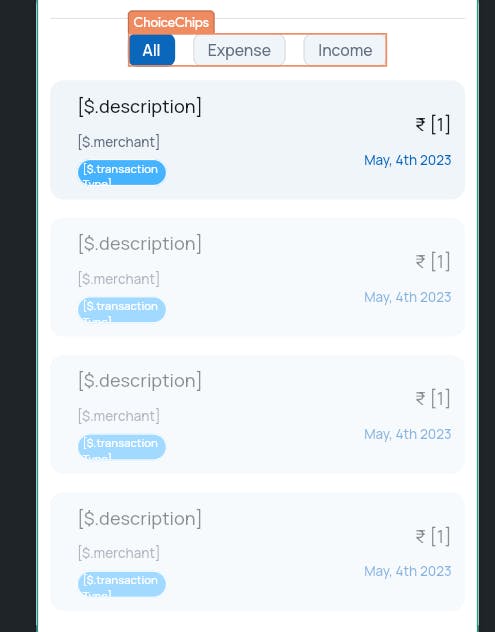 However, I am struggling with how to filter the transactions shown in the ListView based on the selected chip value.