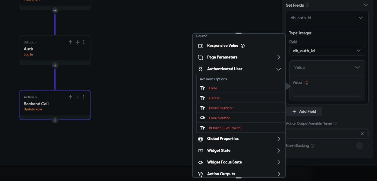 Question, why my authenticated user options are unavailable to use? I want to get the user_uid and update a reference table I have in Supabase, but all options show as red. Already tried adding conditionals around it but no luck.