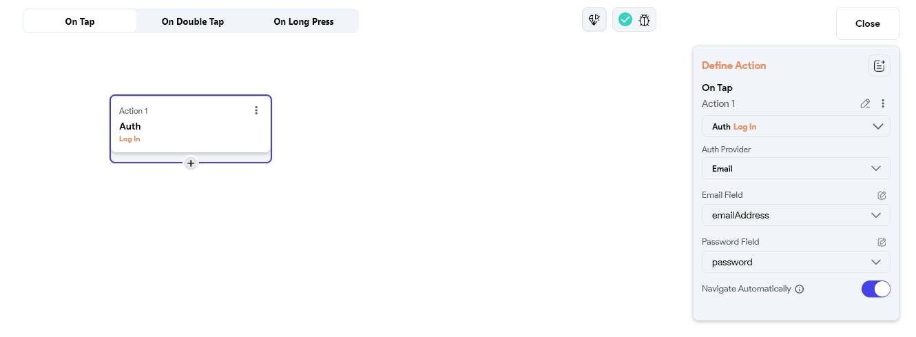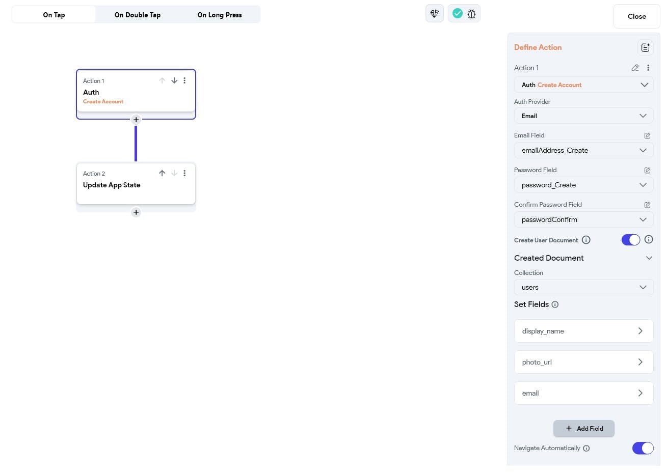 Create Account Action + log in action