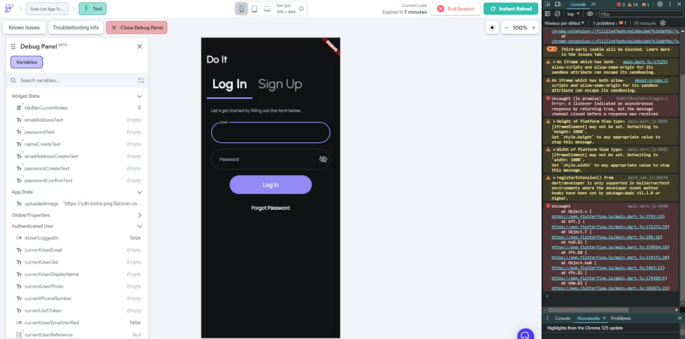 I am working on a Todo List App, I follow a tutorial to do it, I just implemented the Sign in/Sign up pages, when clicking the button to create an account, it does send the data to Firebase as a document is created with all the infos.