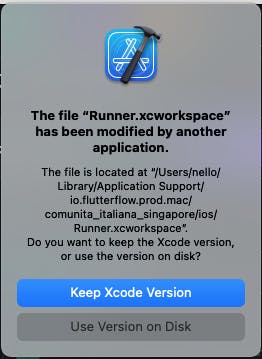 Xcode throws this error... and asks if I wan to keep the "version" on disk.