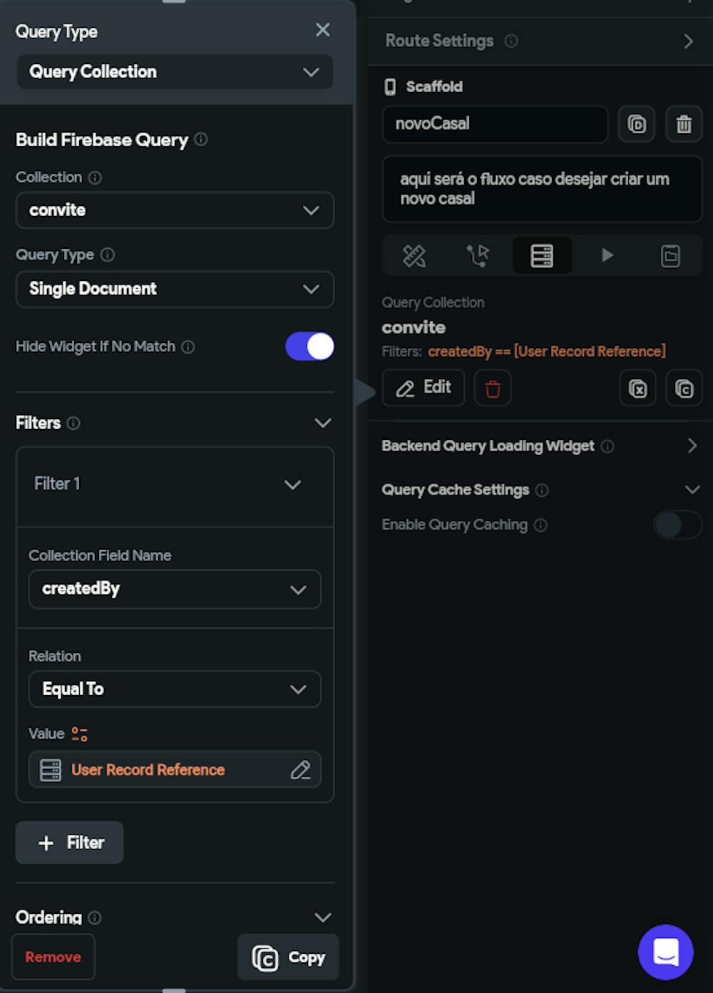 I created a cloud function that fills a collection with the following fields: "IdConvite", "createdby", "ExpiresAt" and "coupleID". The function works well and fills correctly (I will show the prints and the function). However, when I go to another screen to make a query in the backend to search for this "createdby" (which is the uid of the authenticated user) it does not find it and comes back empty, leaving the entire screen gray (since I marked it not to bring anything if there is no match)