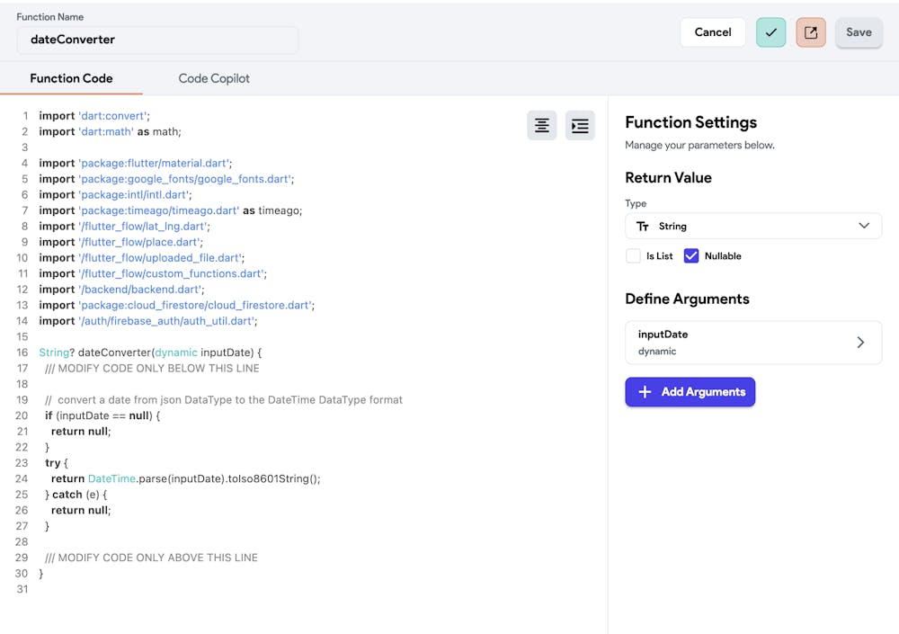 I have been advised I need to use custom code to create a function to change my API data into date time, but I'm not familiar enough with coding to do this myself or understand the code that the code copilot is outputting (see screenshot).