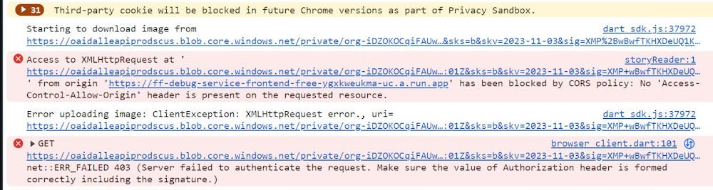 storyReader:1 Access to XMLHttpRequest at 'https://oaidalleapiprodscus.blob.core.windows.net/private/org-iDZOKOCqiFAUw4Cc2KqWAYQY/user-4h7j6rphHSJlb2MPnIvbCOeb/img-XzX2aQ3sbbN0fd07ilAbx7k7.png?st=2024-07-09T20:30:31Z&se=2024-07-09T22:30:31Z&sp=r&sv=2023-11-03&sr=b&rscd=inline&rsct=image/png&skoid=6aaadede-4fb3-4698-a8f6-684d7786b067&sktid=a48cca56-e6da-484e-a814-9c849652bcb3&skt=2024-07-09T18:25:01Z&ske=2024-07-10T18:25:01Z&sks=b&skv=2023-11-03&sig=XMP+wBwfTKHXDeUQ1Kj5Uew0mkNc37zchvn2pPkzhyw=' from origin 'https://ff-debug-service-frontend-free-ygxkweukma-uc.a.run.app' has been blocked by CORS policy: No 'Access-Control-Allow-Origin' header is present on the requested resource.