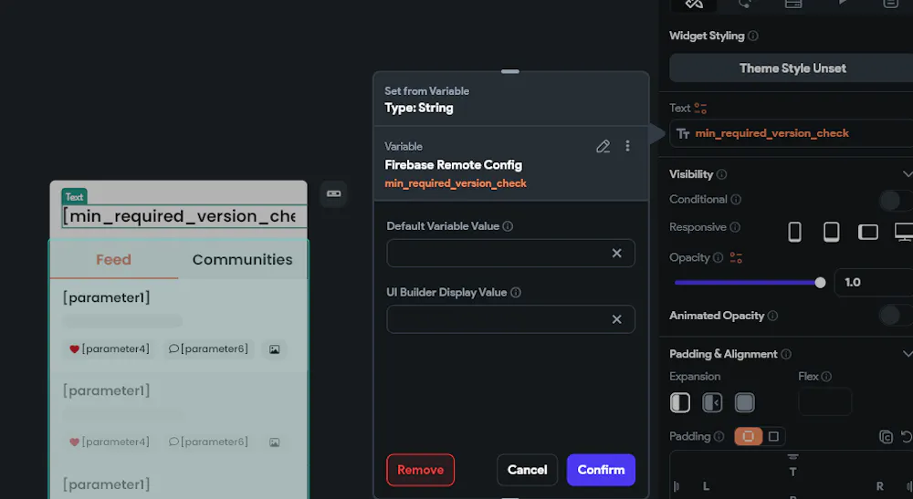 However, the Text widget always shows the in-app default (which i did not set in this case) and never the value from Firebase (1.1.2). Even when I run the app (not preview), it seems Remote Config is not being fetched.