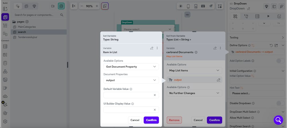 I want to use the dropdown feature and get dynamic data from firebase. After i set the query collection and move to define options i choose Get document property and choose my document property but it doesn't show on the dropdown when i test it . it shows a list of ( carbrand Documents->Output0)... what did i do wrong ? and what can i do to fix it ?