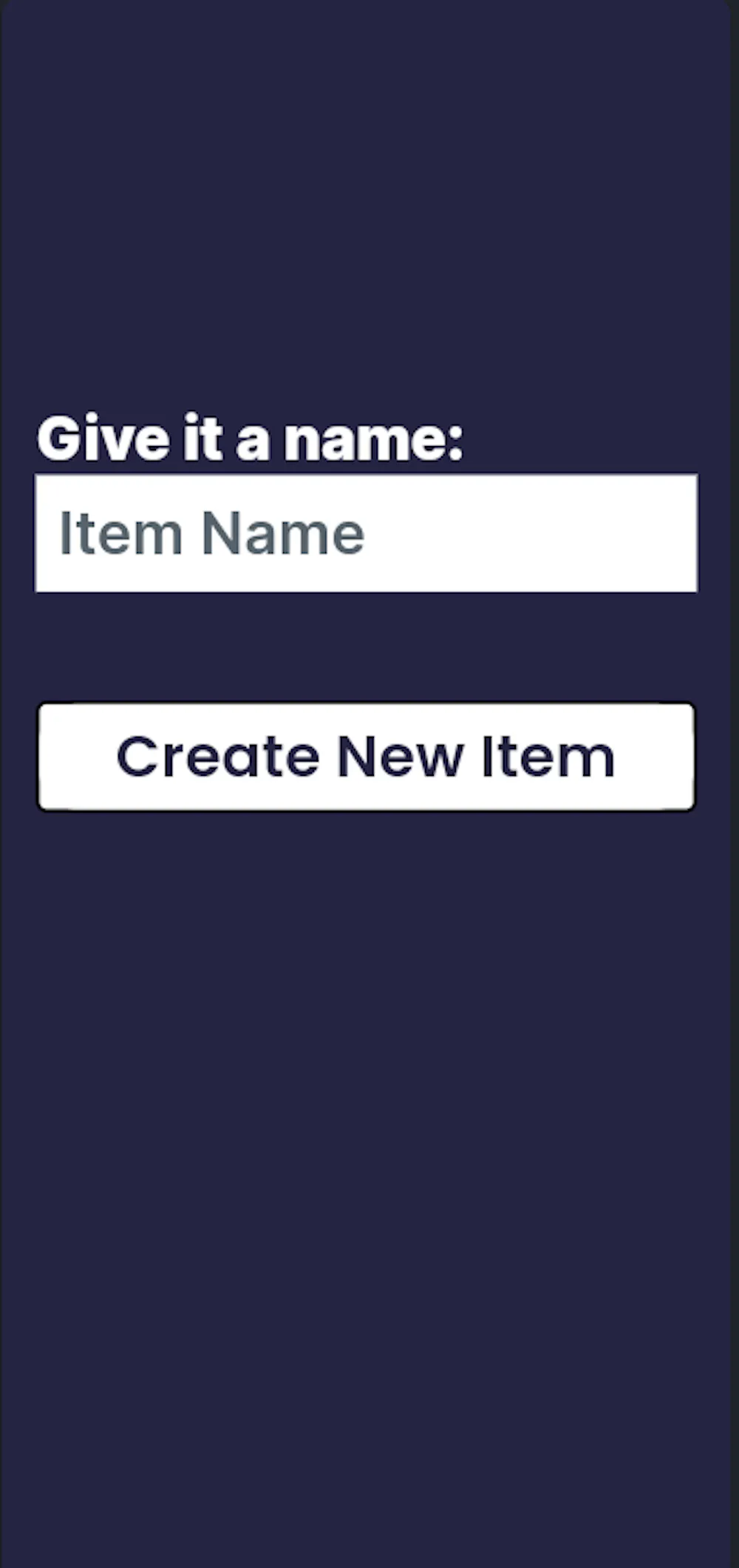 So in Screen 1 I have a text input "ItemName" and then a button "Create New Item" and I want there to be an item with that name, that can store different values.
