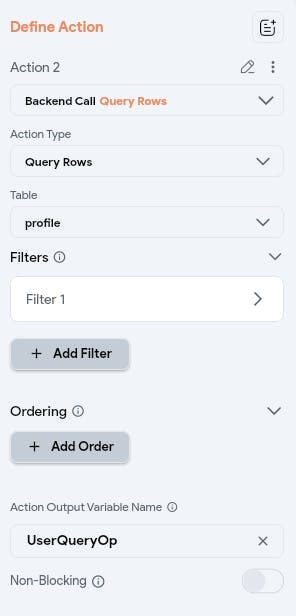 Here's a backend query which returns a single row because its filtered based on the ID(logged in user id) field