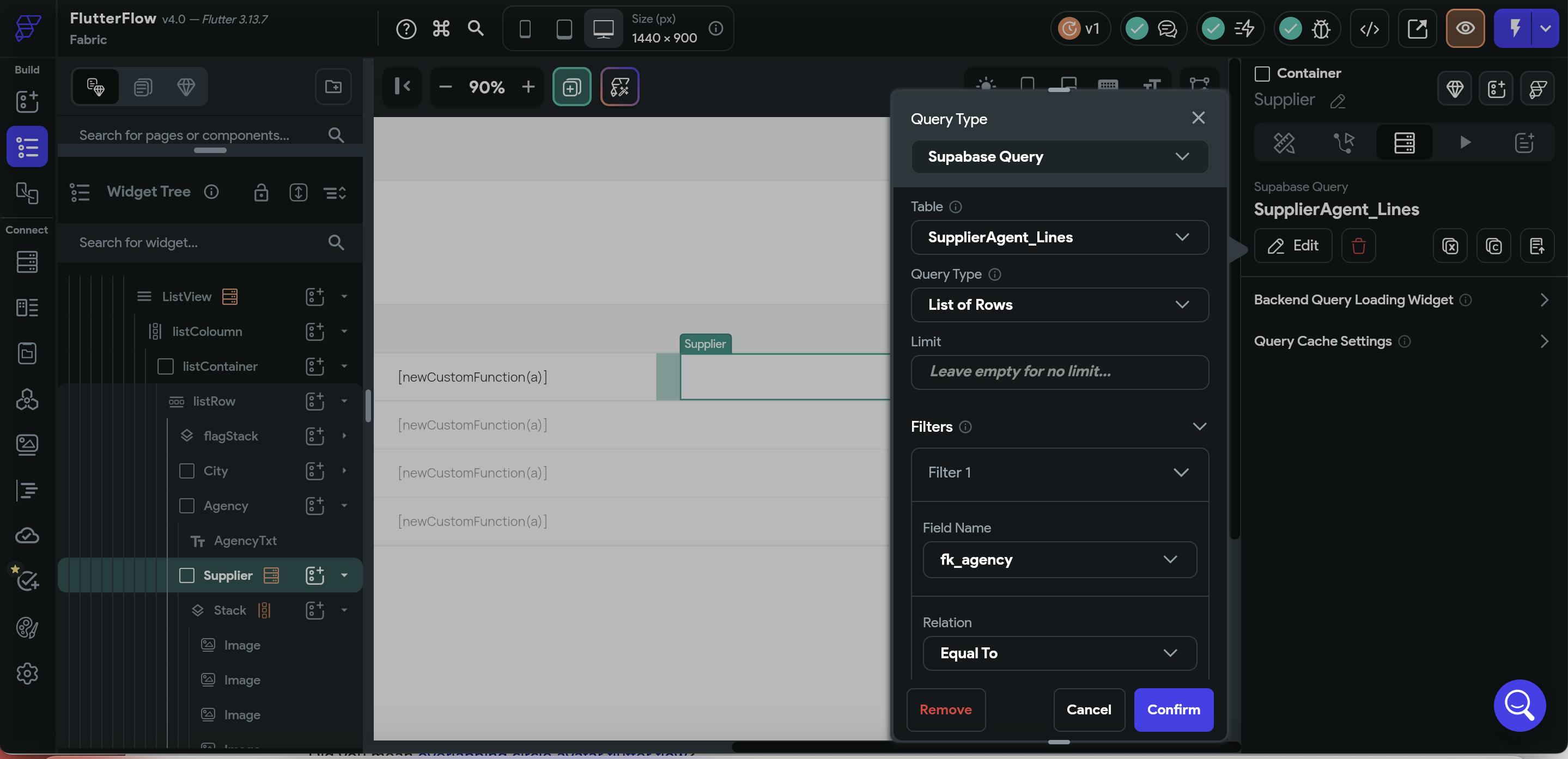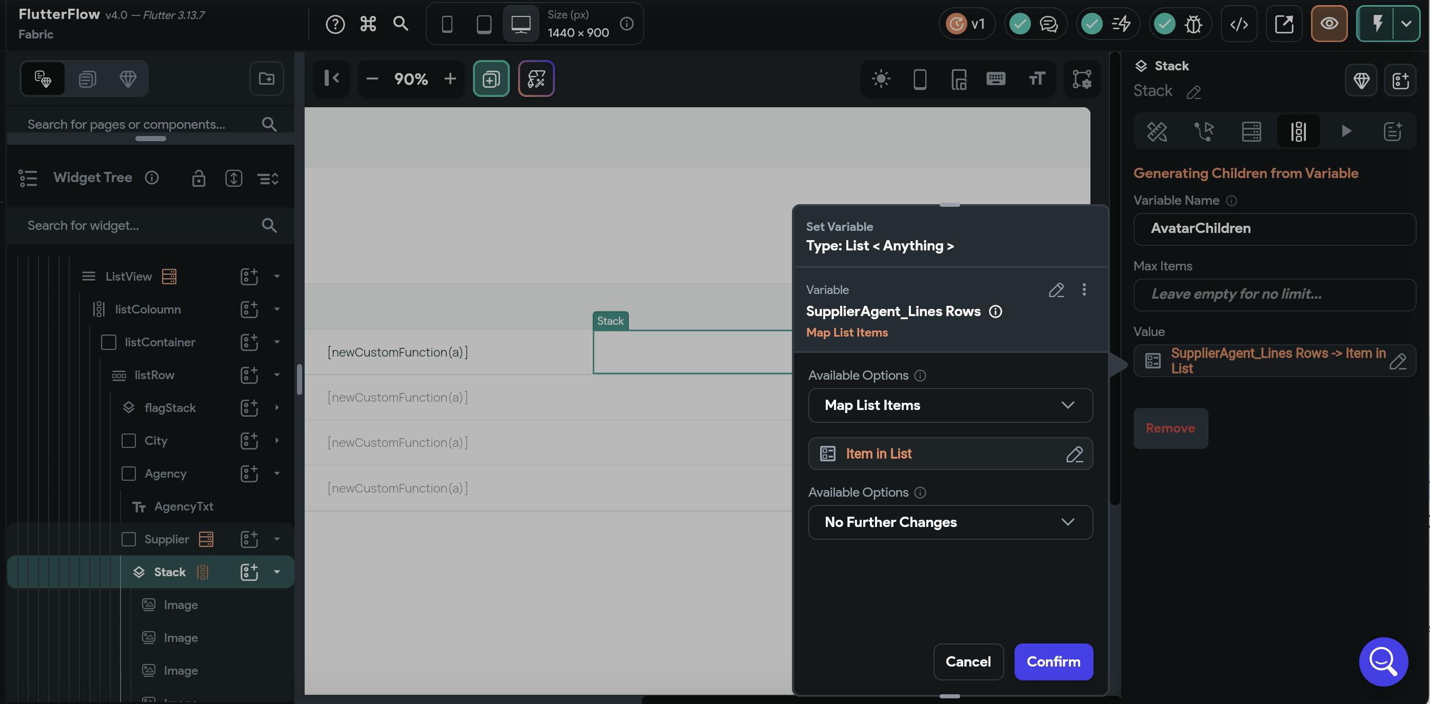 Then I have a stack component creating dynamic children based on the query of the supplier container.