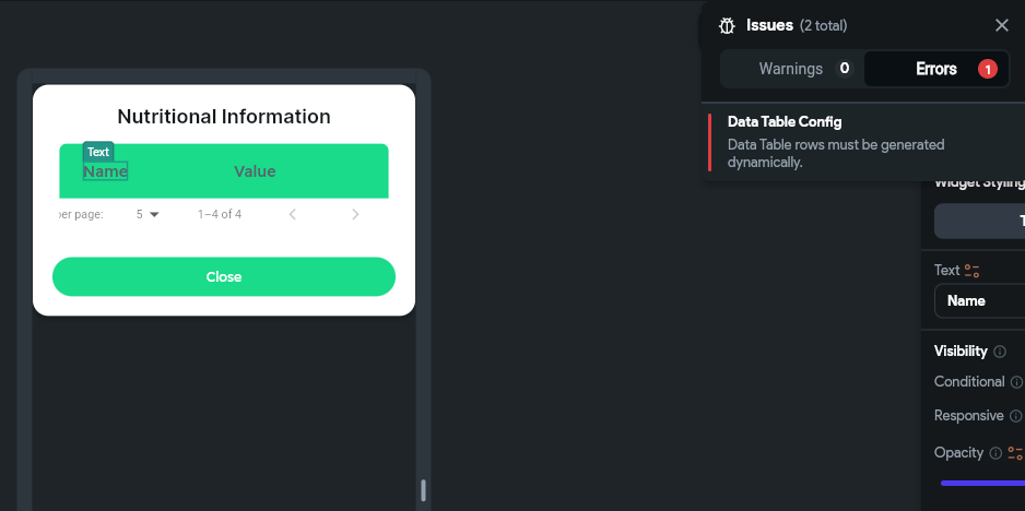 However, I’m getting this error: "Data Table rows must be generated dynamically."