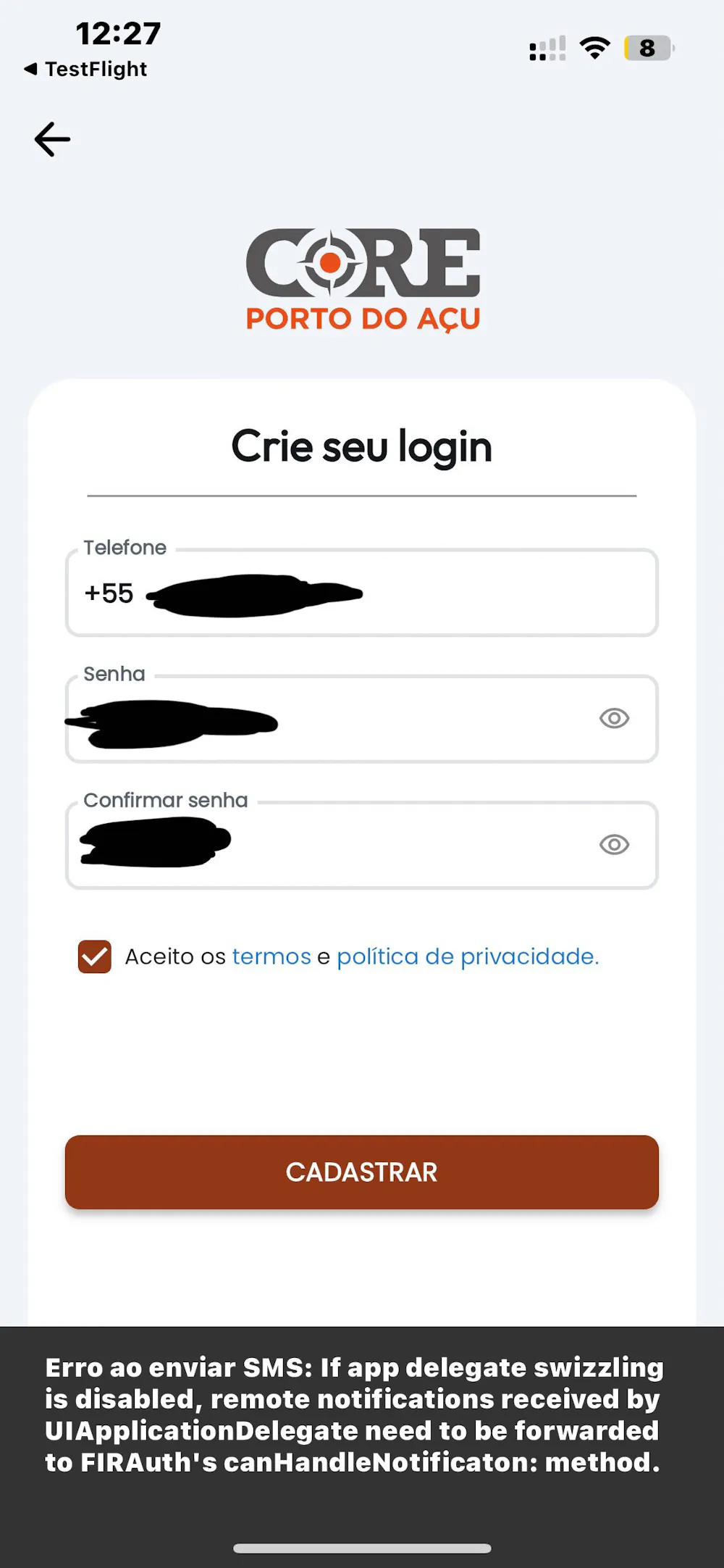 I've setup Phone Sign In in my FF project, but when testing on IOS, the SMS code aren't sent. Error says: "If app delegate swizzling is disabled, remote notifications received by UIApplicationDelegate need to be forwarded to FIRAuth's canHandleNotificaton: method."