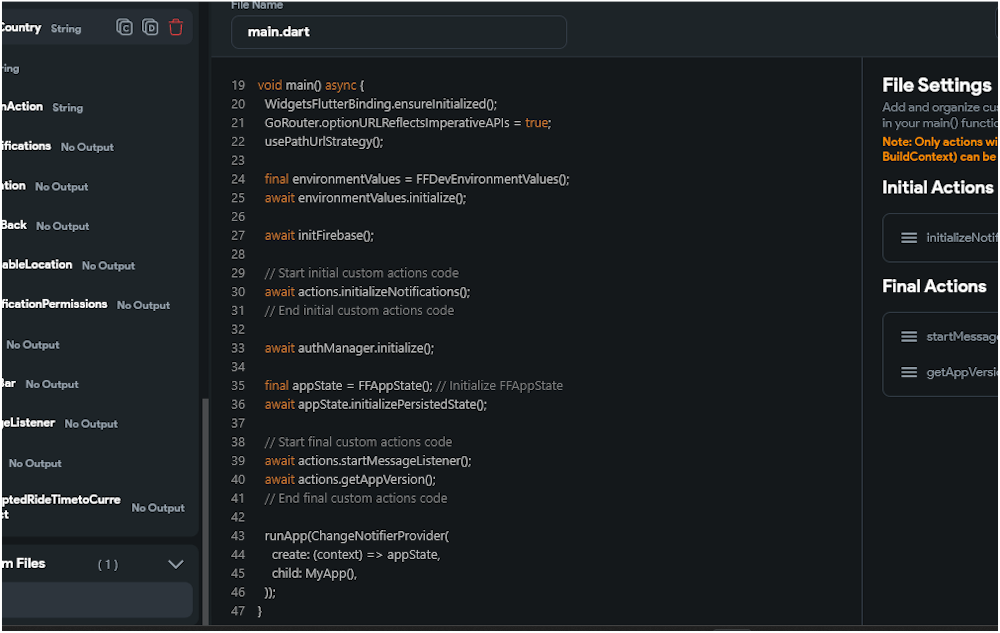 11.4.0 - [FirebaseCore][I-COR000005] No app has been configured yet. 11.4.0 - [FirebaseMessaging][I-FCM001000] FIRMessaging Remote Notifications proxy enabled, will swizzle remote notification receiver handlers. If you'd prefer to manually integrate Firebase Messaging, add "FirebaseAppDelegateProxyEnabled" to your Info.plist, and set it to NO. Follow the instructions at: https://firebase.google.com/docs/cloud-messaging/ios/client#method_swizzling_in_firebase_messaging to ensure proper integration. no valid “aps-environment” entitlement string found for application no valid “aps-environment” entitlement string found for application 11.4.0 - [FirebaseMessaging][I-FCM012002] Error in application:didFailToRegisterForRemoteNotificationsWithError: no valid “aps-environment” entitlement string found for application Syncing files to device iPhone 15 Pro Max... [ERROR:flutter/runtime/dart_vm_initializer.cc(41)] Unhandled Exception: Invalid argument(s): iOS settings must be set when targeting iOS platform. #0 FlutterLocalNotificationsPlugin.initialize (package:flutter_local_notifications/src/flutter_local_notifications_plugin.dart:134:9) #1 initializeNotifications (package:rdaid/custom_code/actions/initialize_notifications.dart:38:10) #2 main (package:rdaid/main.dart:34:17) <asynchronous suspension>