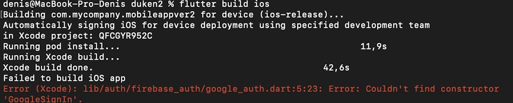 So i have this issue when i'm building my app for IOS in XCODE. Xcoode returns error "failed to update packages" and "couldn't find constructor 'GoogleSignIn' "