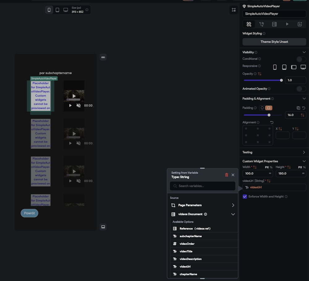 Both widgets refuse to accept paths from my Firestore collections – specifically the videoUrl for videos and imageUrl for images. I’ve double-checked that: