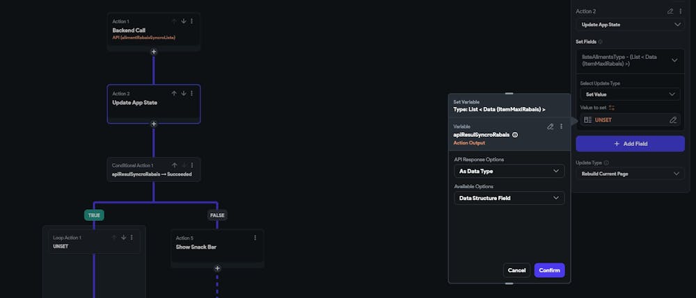edit i have found the solution : I tried to use the loop action but it seems like i cant loop a json array so i tried to parse as datatype but I can't loop either. I was looking to make a custum action but it seems complicated for such a simple task. I then tried to add my datatype action results to a list in app state so i can access the index after but it won't le met bind it.