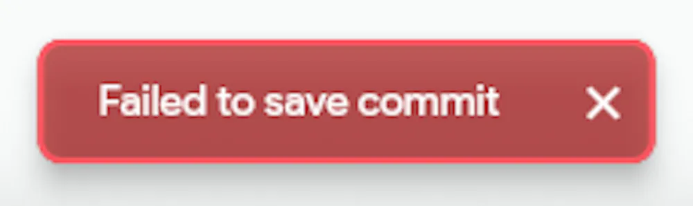 I have a branch that I have been working on for a long time, it has around ~1 month of features inside of it. Earlier today when I tried to commit my latest changes I instantly get the error: "Failed to save commit".