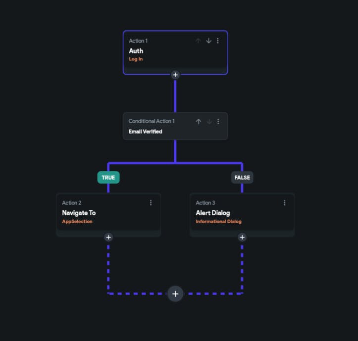 My thought goes to if I could add some kind of conditional action that checks a bool like "authSuccess" or "authFailed".