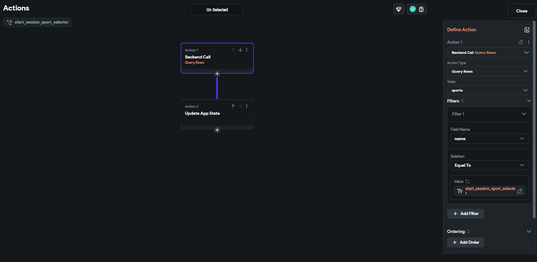 I'm using a "Dropdown" component linked to a Supabase table named "sports." This component allows users to select a sport, which corresponds to the "name" field in my table.