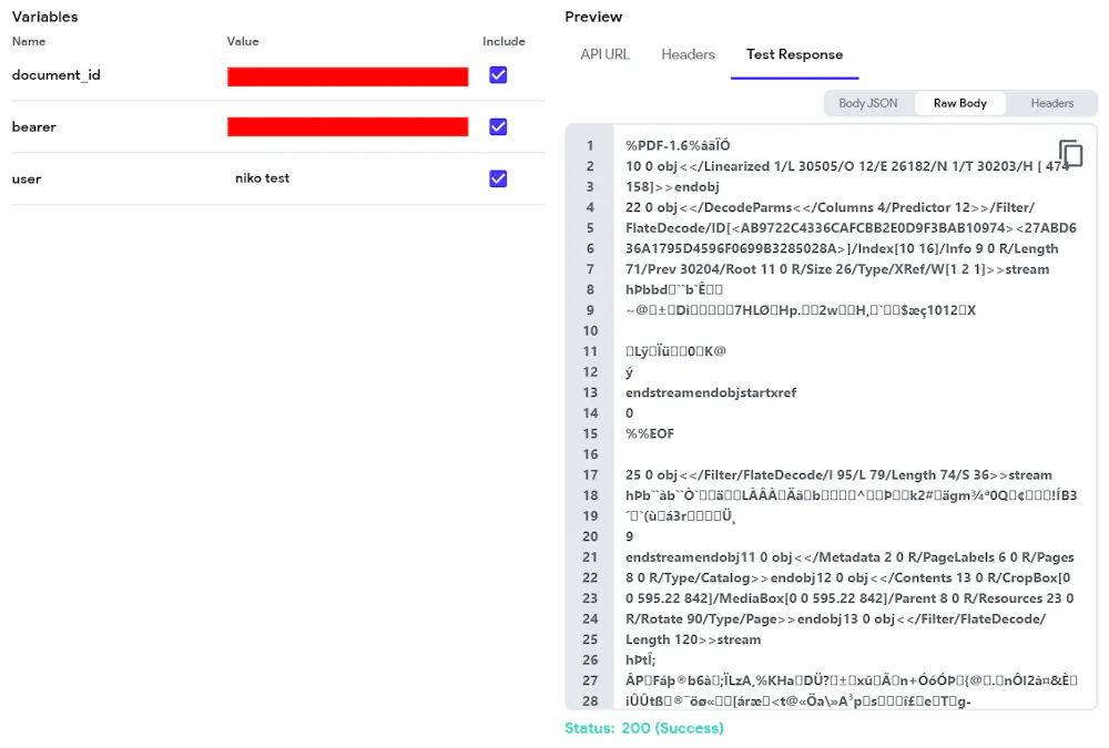 I'm trying to retrieve a file from an API. This file is transmitted to me in the Raw Body Text.