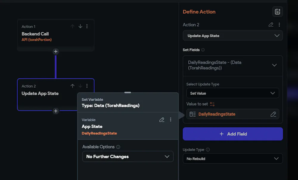 On Load of page I have an API run. I can see the data returned in the bebug but it is not saving to the App State. I have an App State created for this and an action to "set value" to the App State. It is not saving to the App State though.