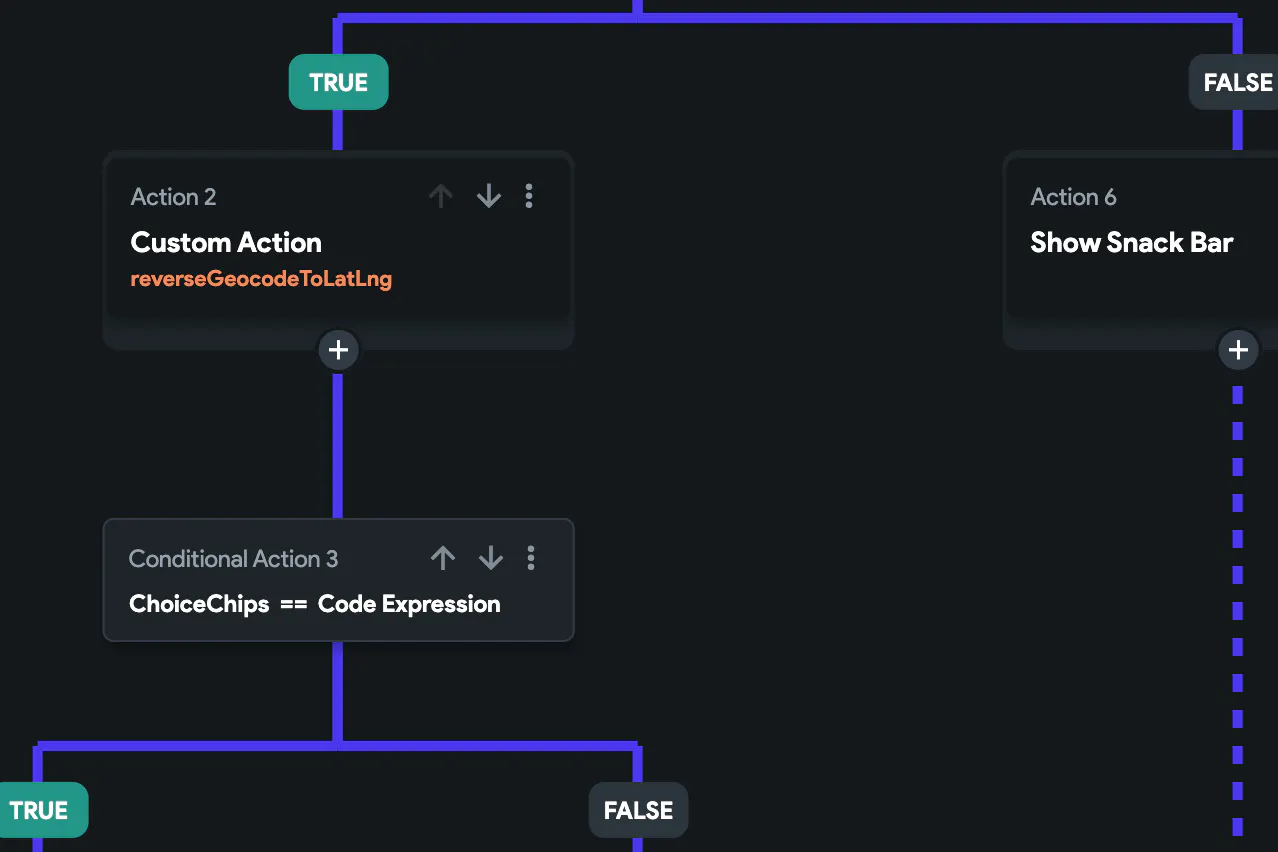 If there is no existing document with the data from the fields, it will then call the reverseGeocodeToLatLng custom action to pull the latitude and longitude based on the address information the user entered in the form.