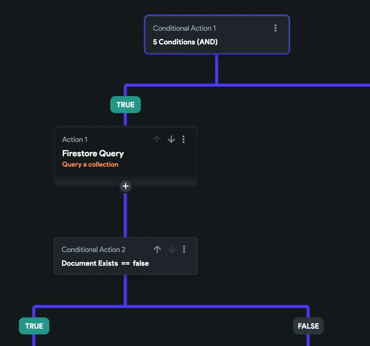 Screenshots of the action flow to show what happens and how the variables are set: