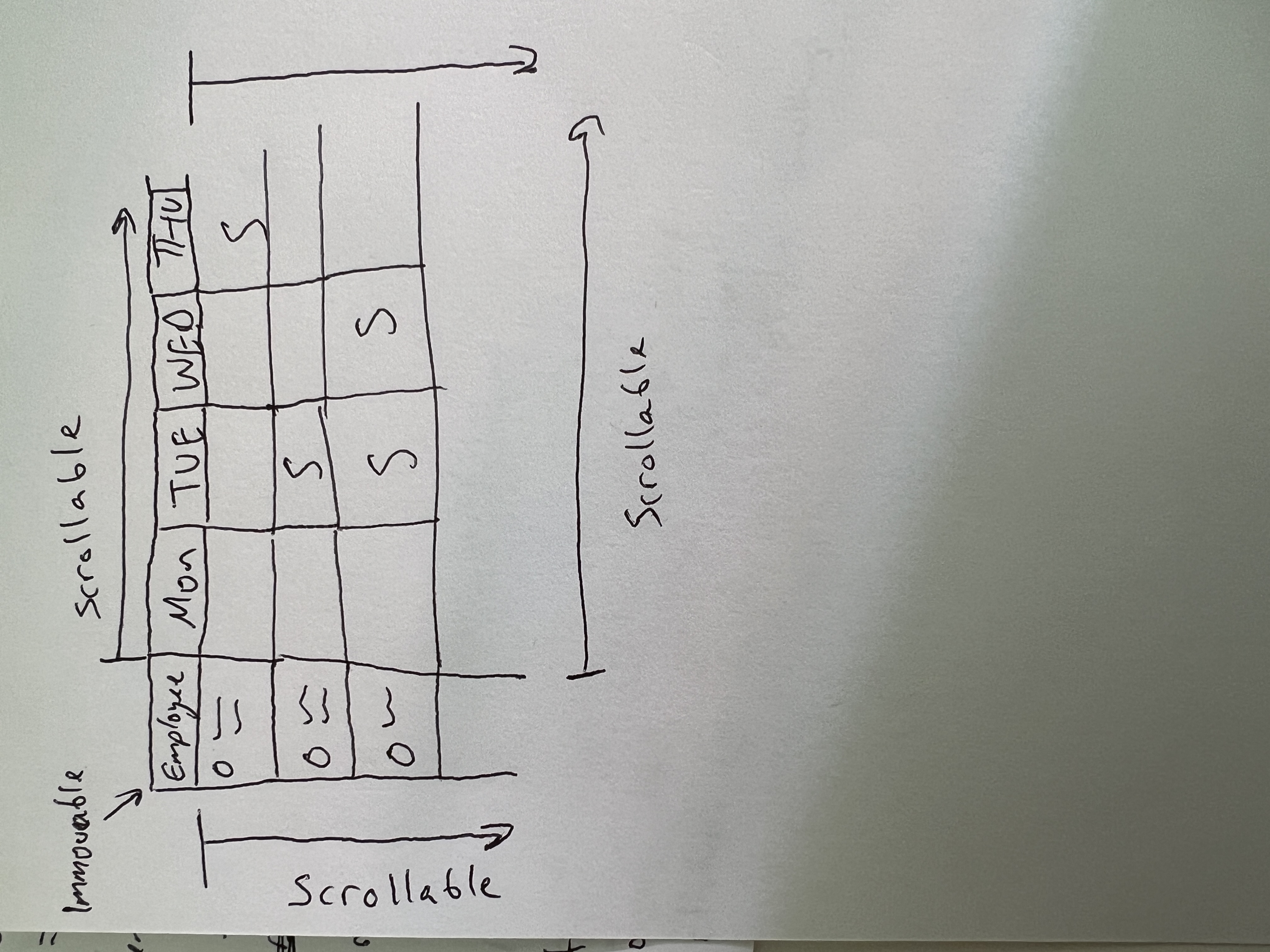 The component will first have a header row containing dates. The left most cell in the header row will be immovable. Cells to the right will be a horizontally scrollable listview row (L.A).