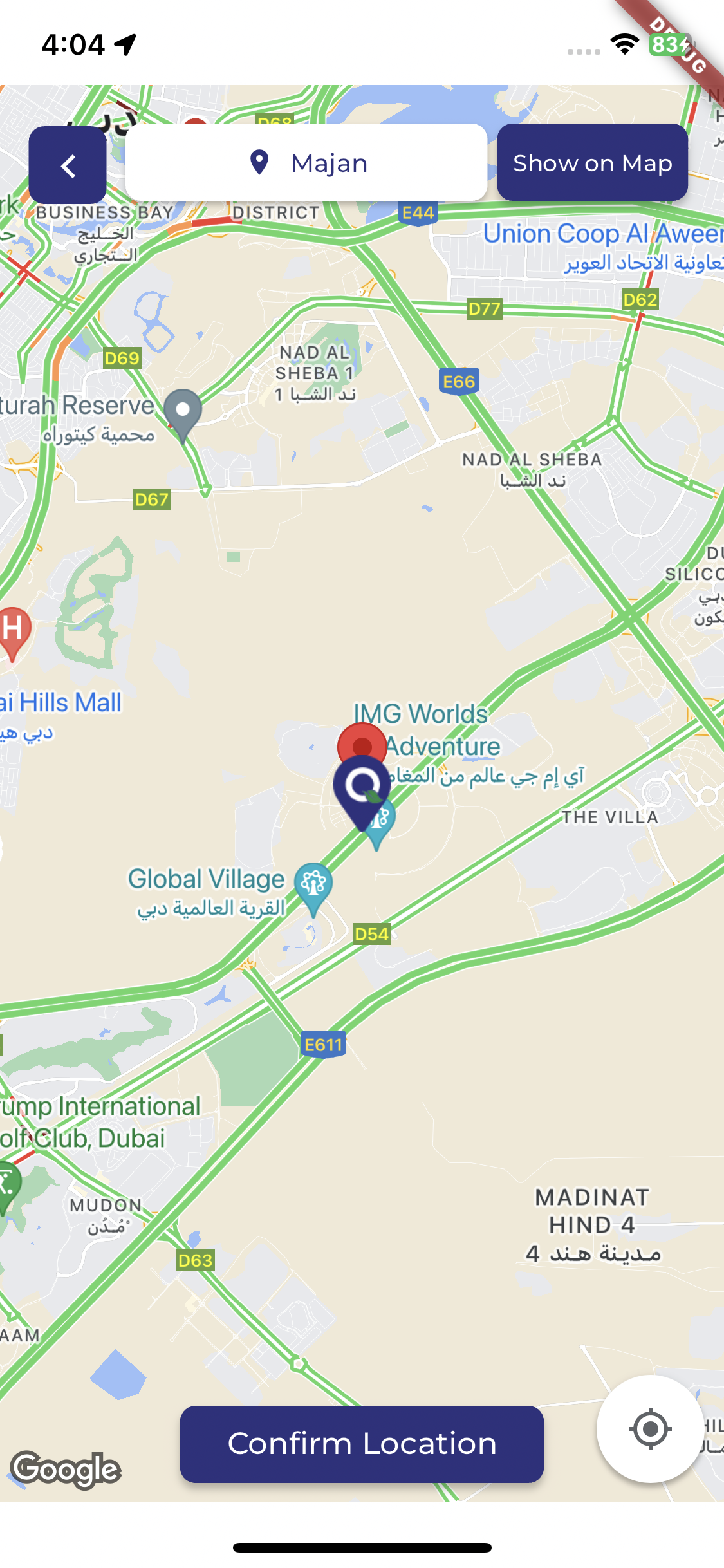 Google Map shows the location picker at the selected address or location without clicking any button. Please check video or screenshot first select location on location selector then select show on map and then select location redirect to google map.