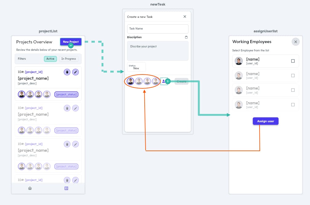 As I tried to explain below, I want to return selected employee's Avtar in array and store details temporally in App state after filling the "newtask" details Create button will add those selected employees along with the other details into supabase backend's new task list.