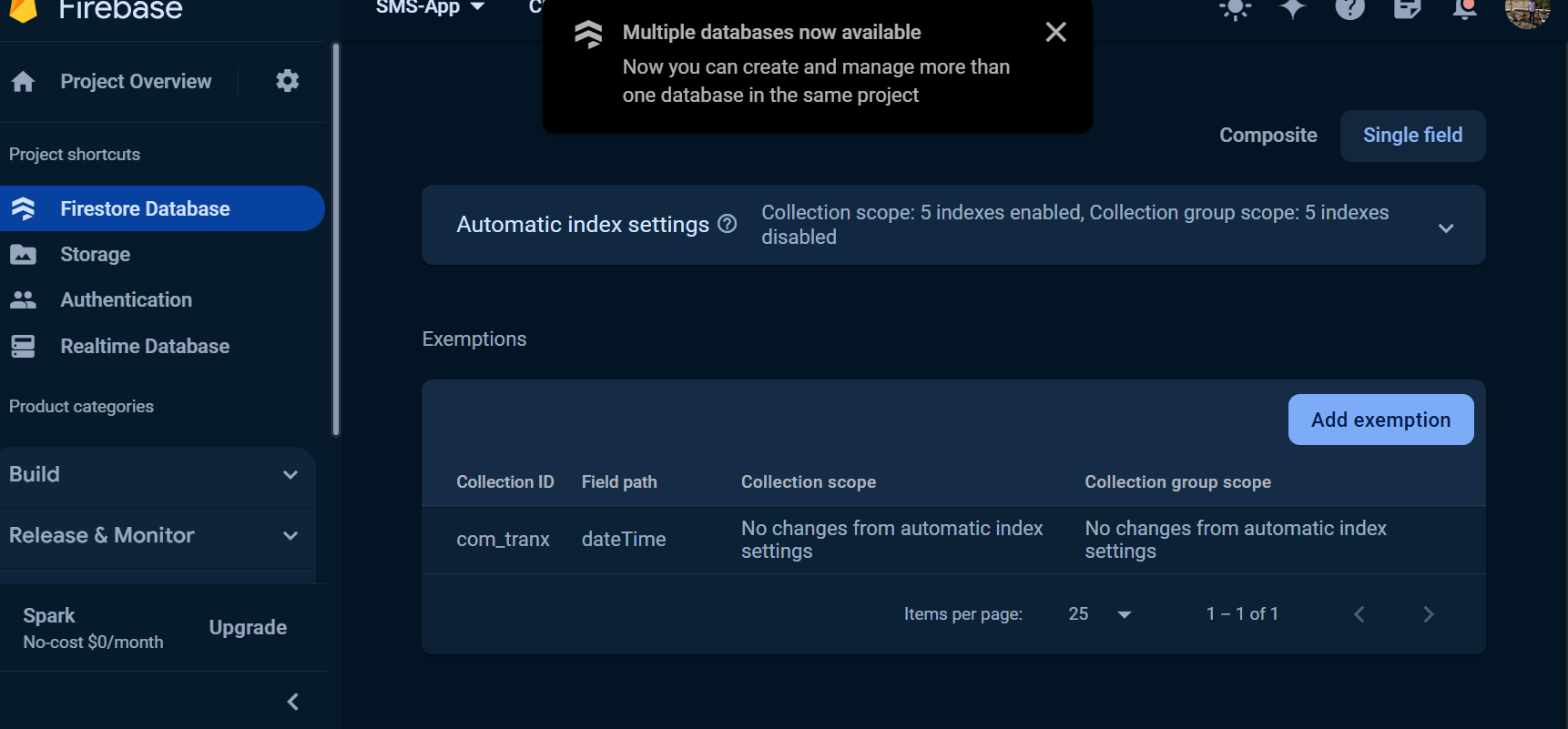 I already tried the link it gave and added indexes to both the composite and single field.