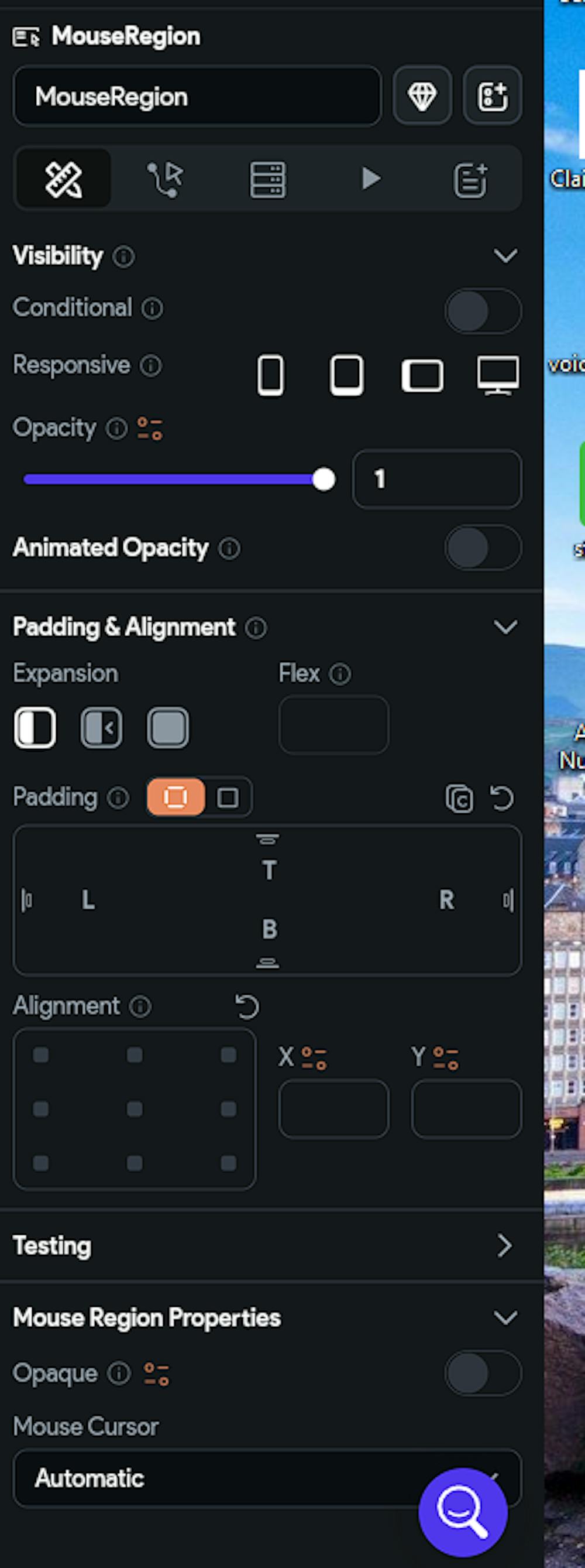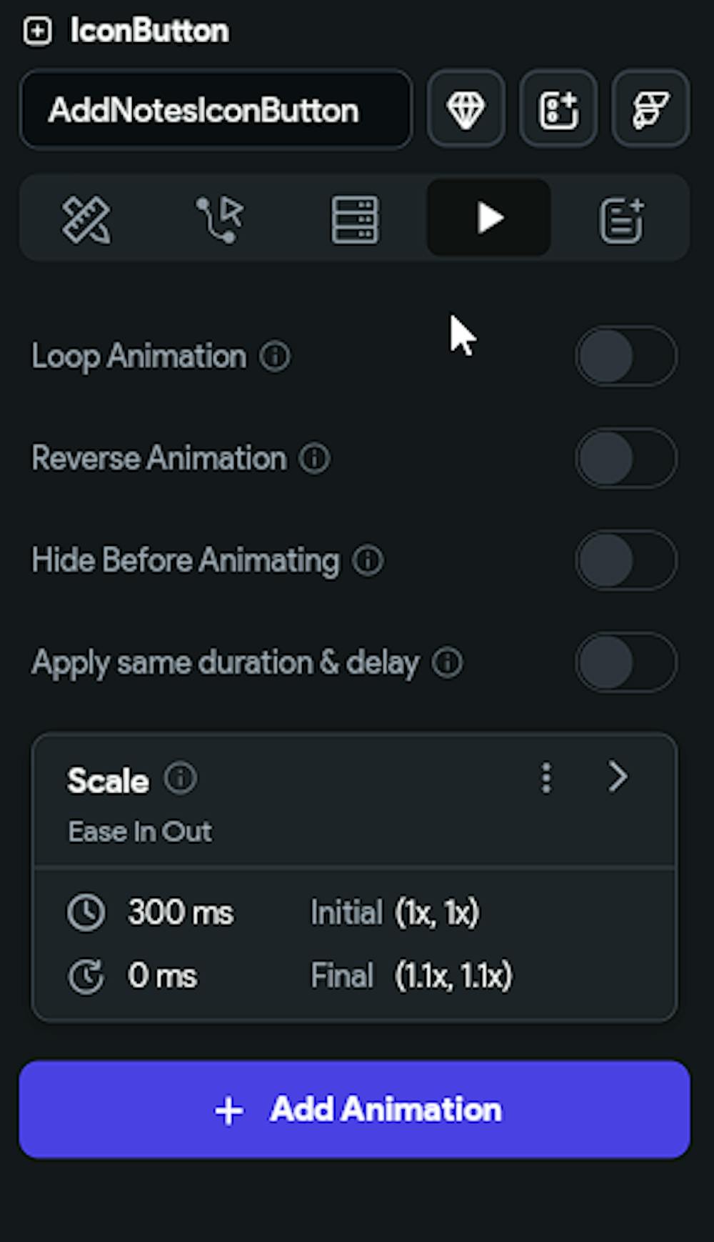 Widget Animation selection grayed out (disabled) when trying to add to mouse region