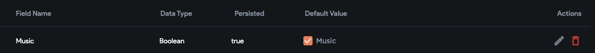 Name: Music DataType: Boolean Persisted: True Default Value: True