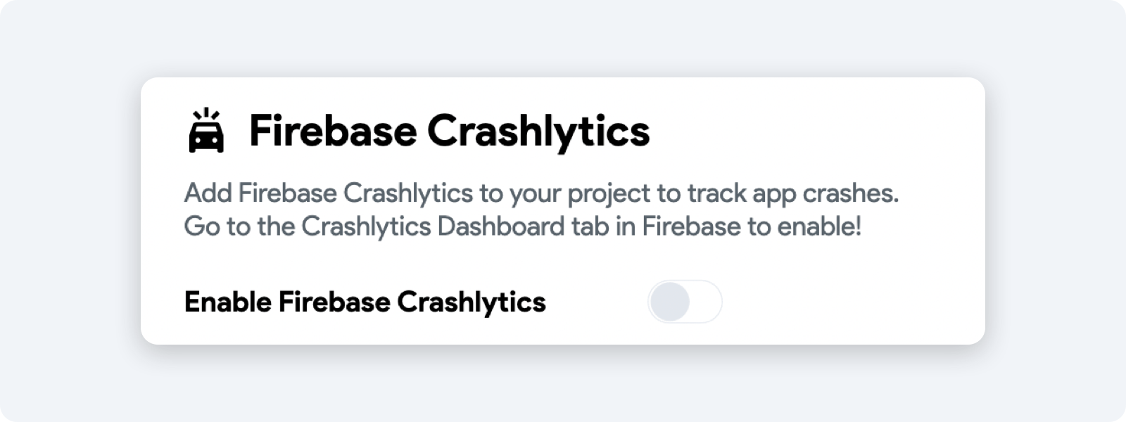 To enable this in your project head to Settings & Integrations > Integrations > Firebase Crashlytics, and then ... this is gonna be tricky ... toggle it on. โ