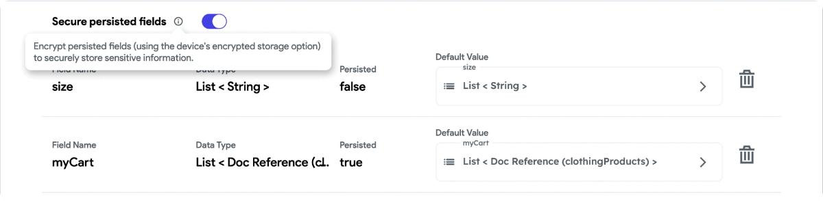 To use this feature, select the "Secure Persisted Fields" toggle on the main Local State page.