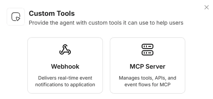 To send and receive real-time data, use Webhooks. To give access to a third-party tool you use, connect to the MCP server.