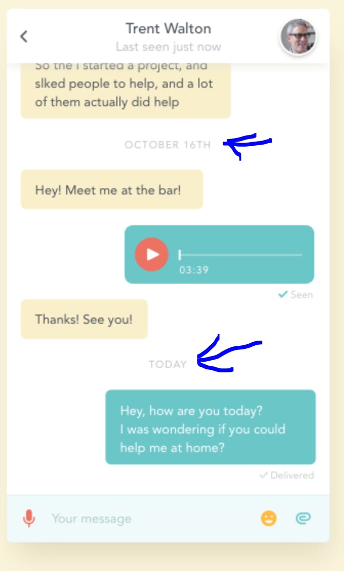 How to create a timestamp that will only show if chat was sent on a different day? Willing to pay for help!