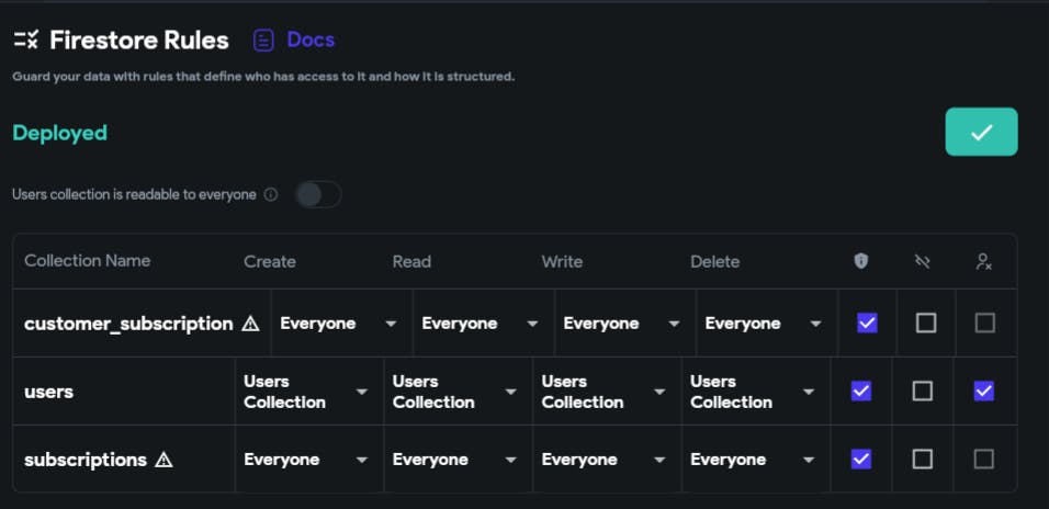 Error creating subscriber document: FirebaseError: [code=permission-denied]: Missing or insufficient permissions.