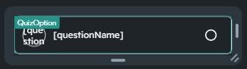 Now I have a page called quiz_page for displaying the questions in a page view where each option is a component and it has 3 parameters questionNum,questionName and isTrue which is set according to to values stored in the quiz document.