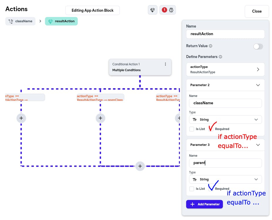 Every time I want to create a flexible and convenient component, I lack the ability to set conditions for the visibility/requirement of argument/parameter fields based on the selected values in other fields. For example, if "true" is selected, then display and make the string field required; otherwise, display and make two other fields required. This functionality has become so fundamental, habitual, and logical that itβs hard to call it a "useful" or "convenient" feature anymore β it's more of a given. It's like health: you don't notice it until it's gone, and then you realize how crucial it is.