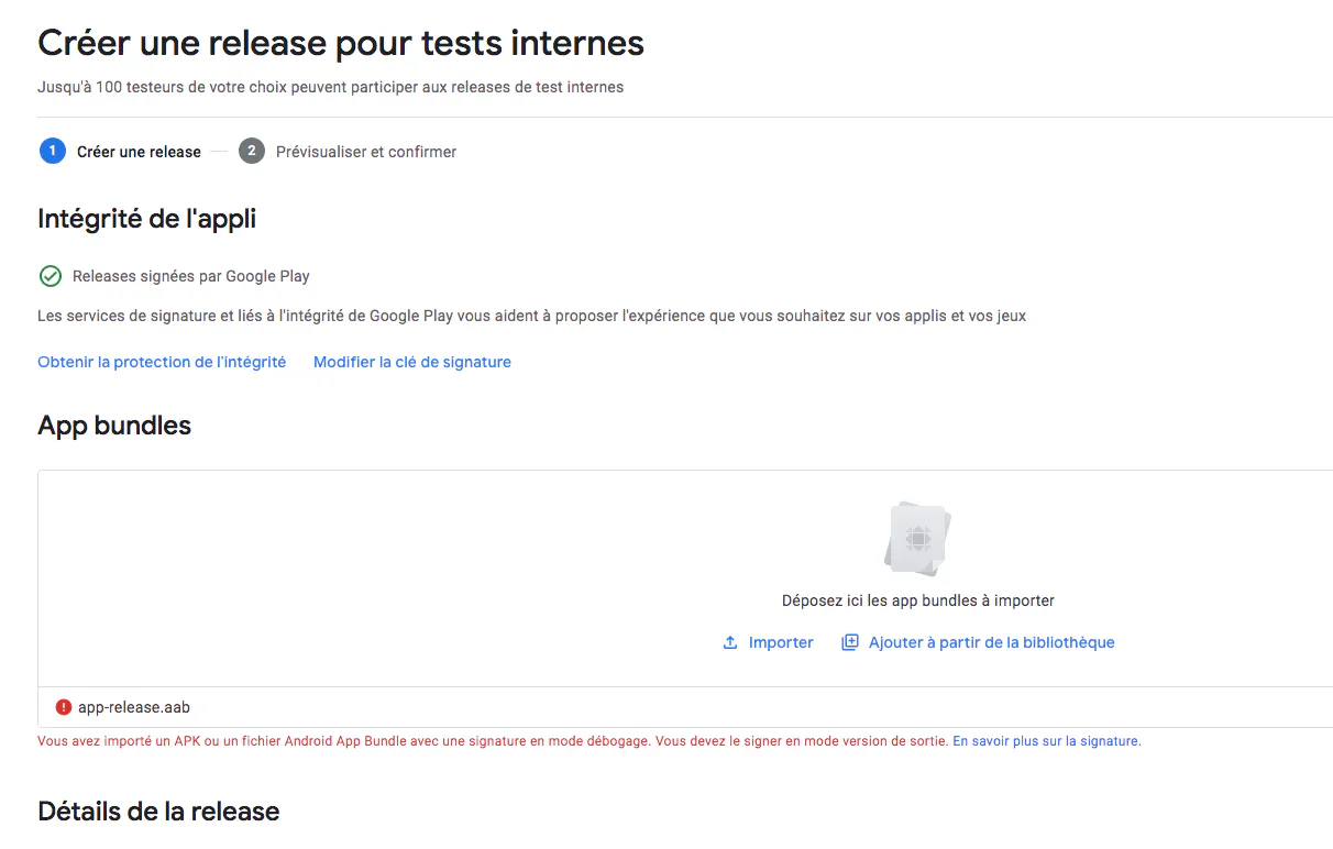 I tried to add my .aab file but I got an error saying that the file is signed in debug mode and not in final mode.