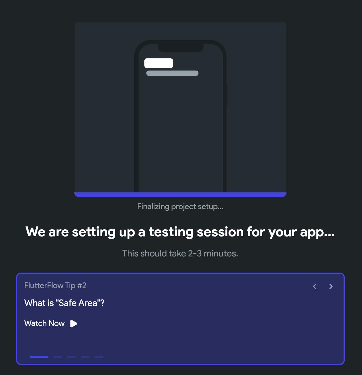 Testing sessions are very slow to load. I often get this screen (screenshot below) for 12 minutes, then "testing session expired". It seems to get worse with time (3 months ago it was not that bad). It also seems related to the traffic load on FlutterFlow servers as weekends seem better.