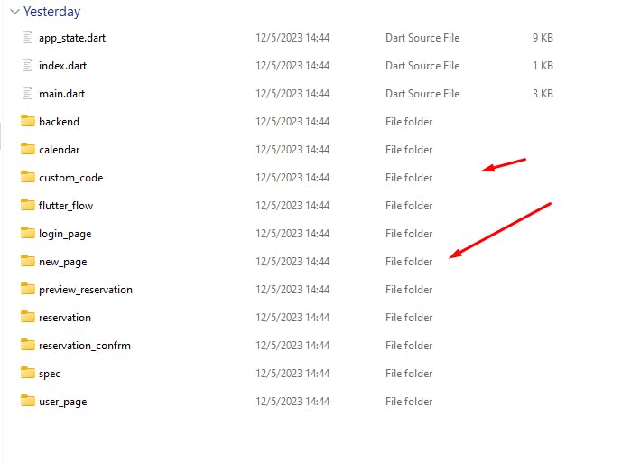 I have downloaded my code and I see that mine custom_code and mine new_page are in same level as mine page but if I make this: